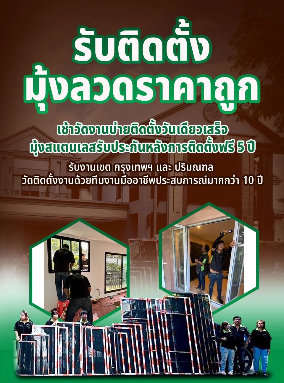 รับติดตั้ง ซ่อมเปลี่ยนมุ้งลวดด่วนถึงบ้าน โดยช่างผู้ชำนาญการประสบการณ์ทำงานมากกว่า 10 ปี รับติดตั้งกระจก อลูมิเนียม รับประกันงานหลังติดตั้งให้ฟรี 5 ปี